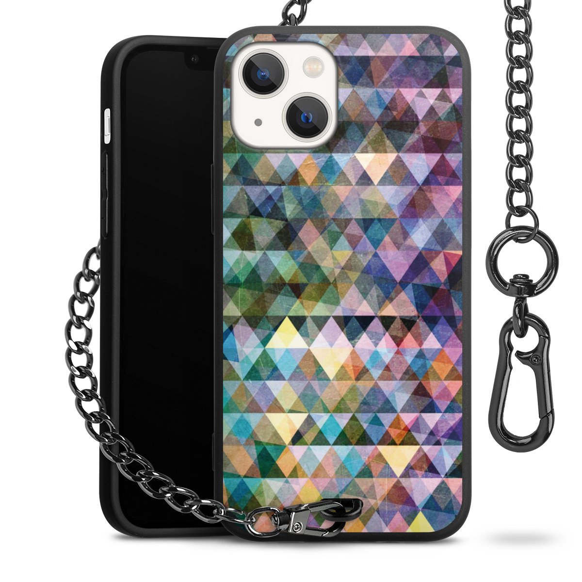 • Mattschwarze Handyhülle mit Metallkette