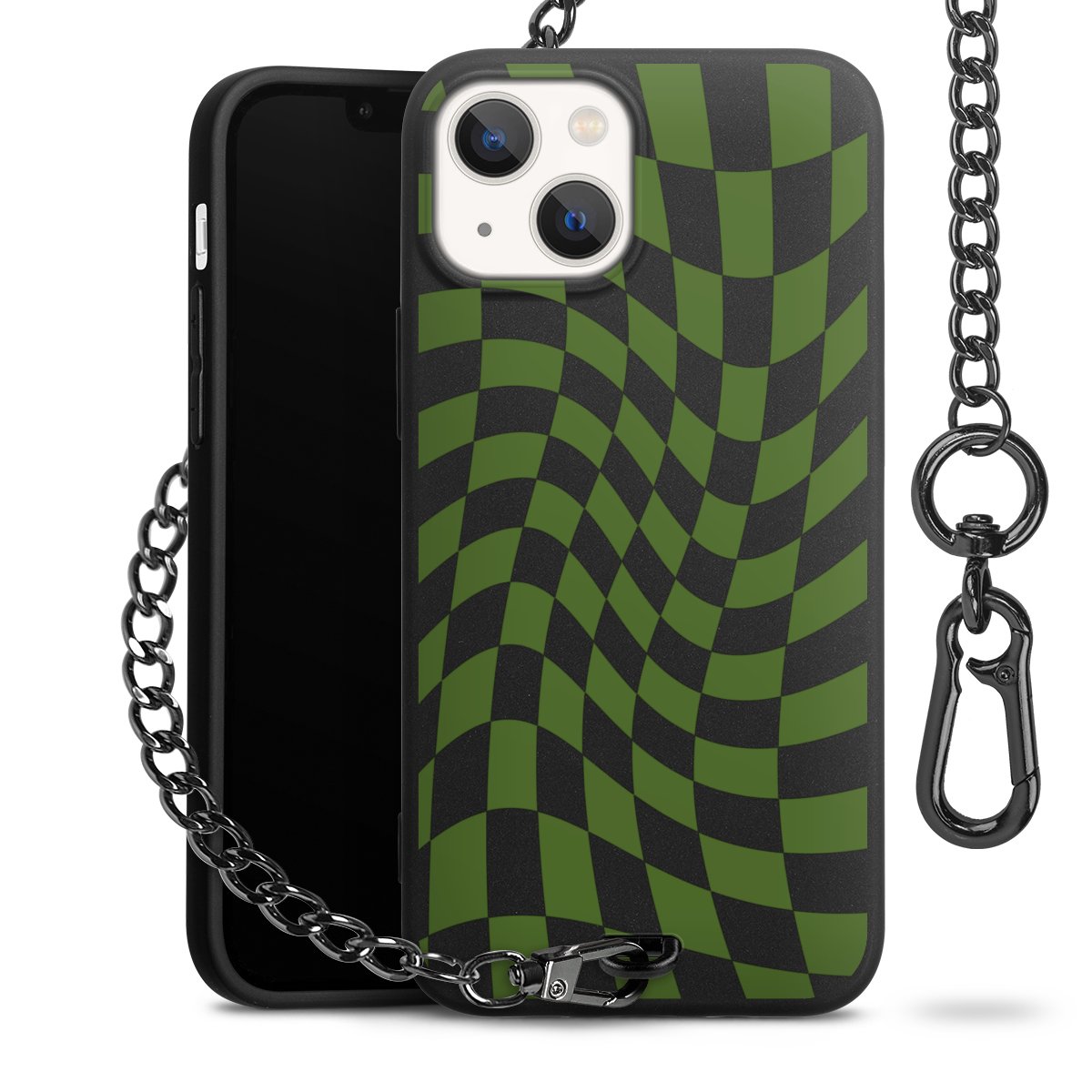 Die mattschwarze Silikon-Handyhülle besteht aus robustem TPU (thermoplastisches Polyurethan). Sie ist flexibel und schützt Dein Smartphone vor Stößen und Kratzern. Die Kette sowie der Karabinerhaken sind aus Metall in Gunmetal-Optik gefertigt. Für dieses Produkt kommen ausschließlich TÜV-geprüfte Materialien zum Einsatz.