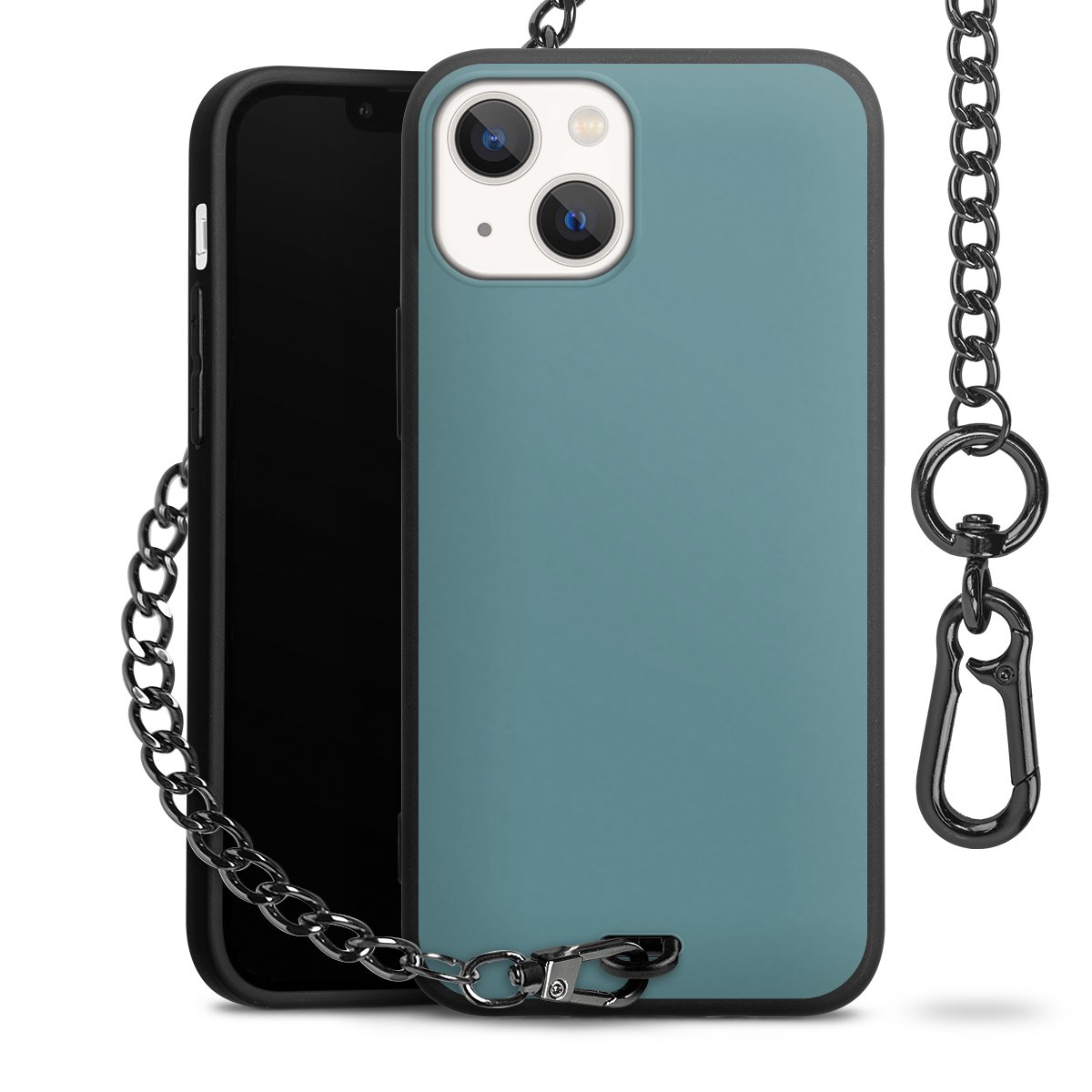 • Mattschwarze Handyhülle mit Metallkette
