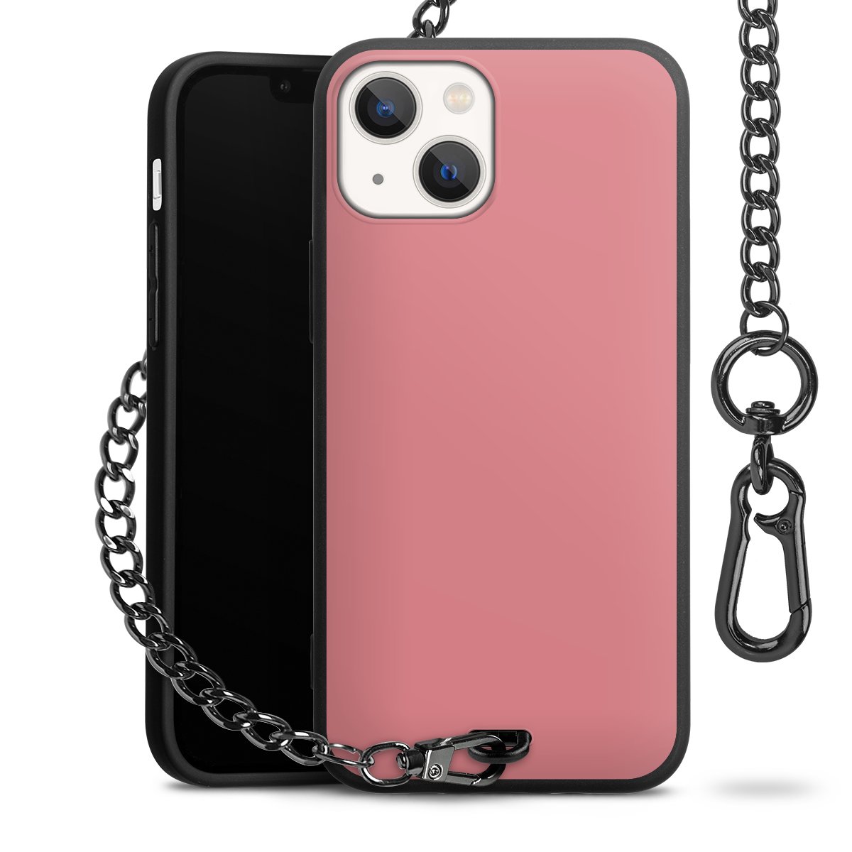 - Mattschwarze Handyhülle mit Metallkette
