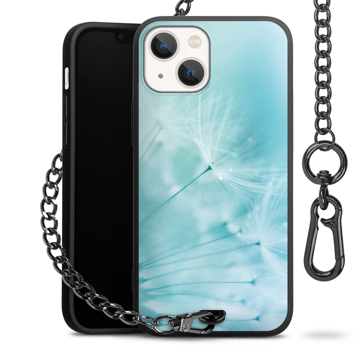 - Mattschwarze Handyhülle mit Metallkette