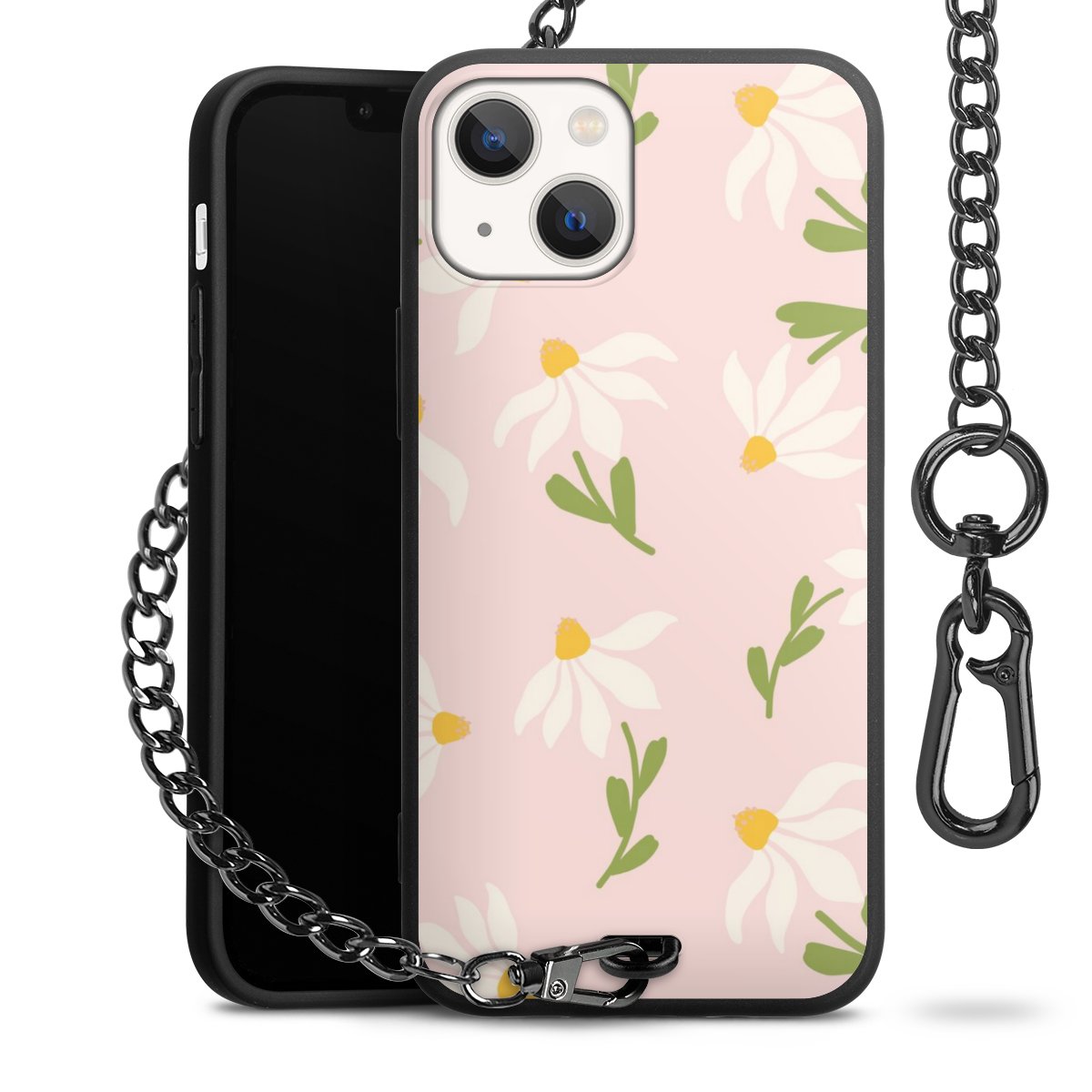 • Mattschwarze Handyhülle mit Metallkette