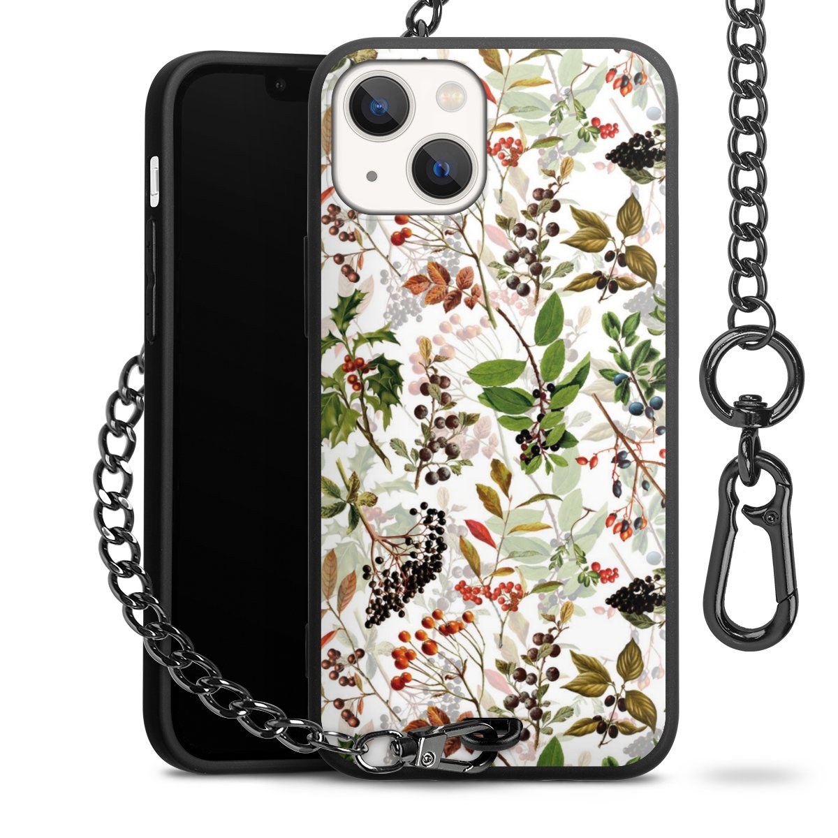 • Mattschwarze Handyhülle mit Metallkette