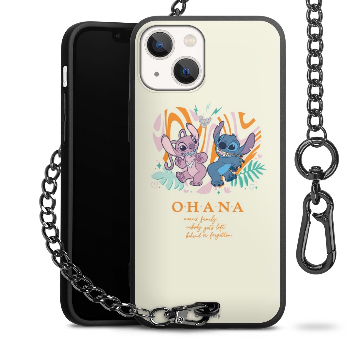 Die Handyhülle verfügt über eine mittig am unteren Rand platzierte Öse, an der die Metallkette stabil befestigt ist. Bestelle die Hülle einfach für Dein Smartphone-Modell, dann passt sie wie angegossen und Du brauchst sie bloß einmal anzudrücken. Handy in die Tasche, Karabiner an den Hosenbund – schon kann die Party starten.