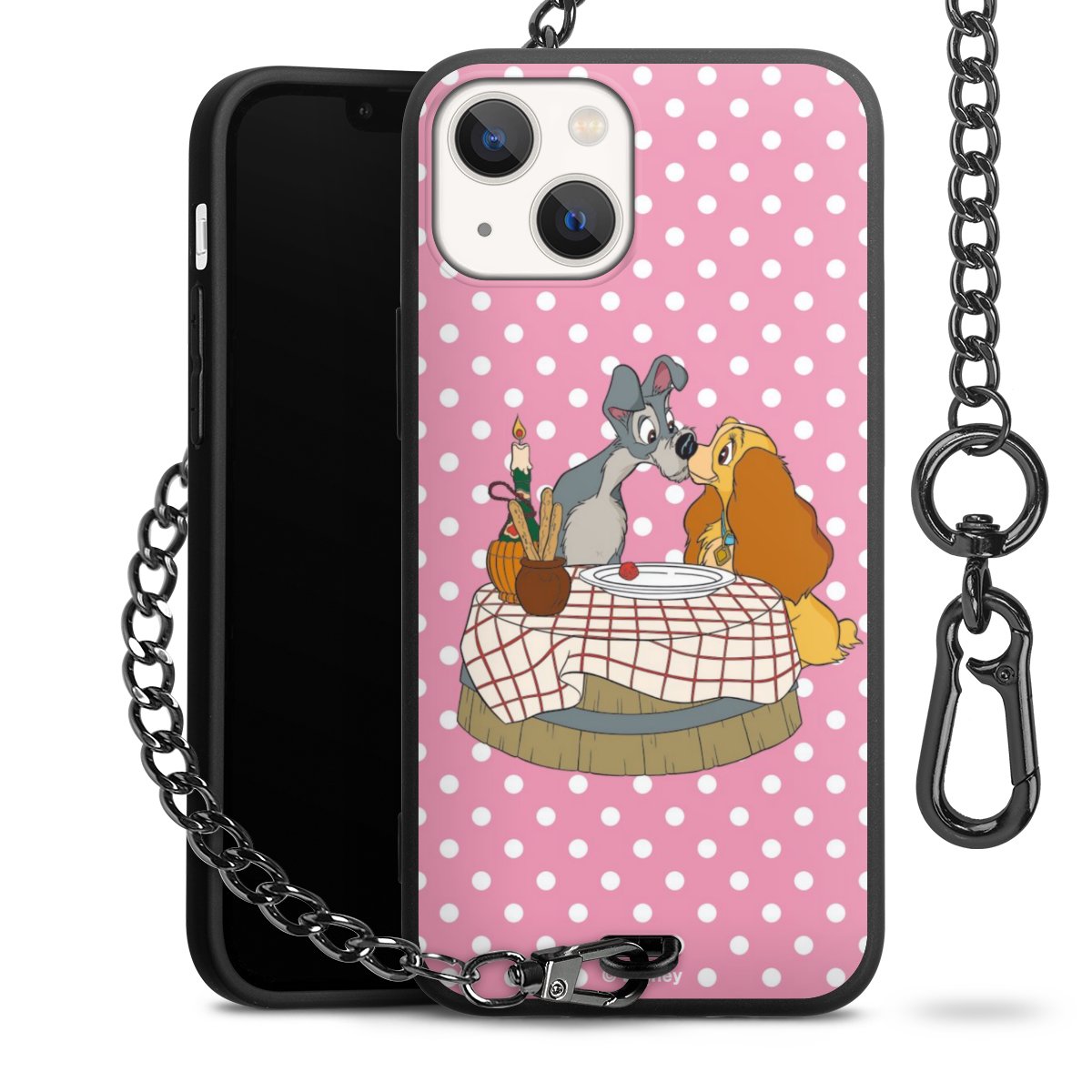 Die Handyhülle verfügt über eine mittig am unteren Rand platzierte Öse, an der die Metallkette stabil befestigt ist. Bestelle die Hülle einfach für Dein Smartphone-Modell, dann passt sie wie angegossen und Du brauchst sie bloß einmal anzudrücken. Handy in die Tasche, Karabiner an den Hosenbund – schon kann die Party starten.