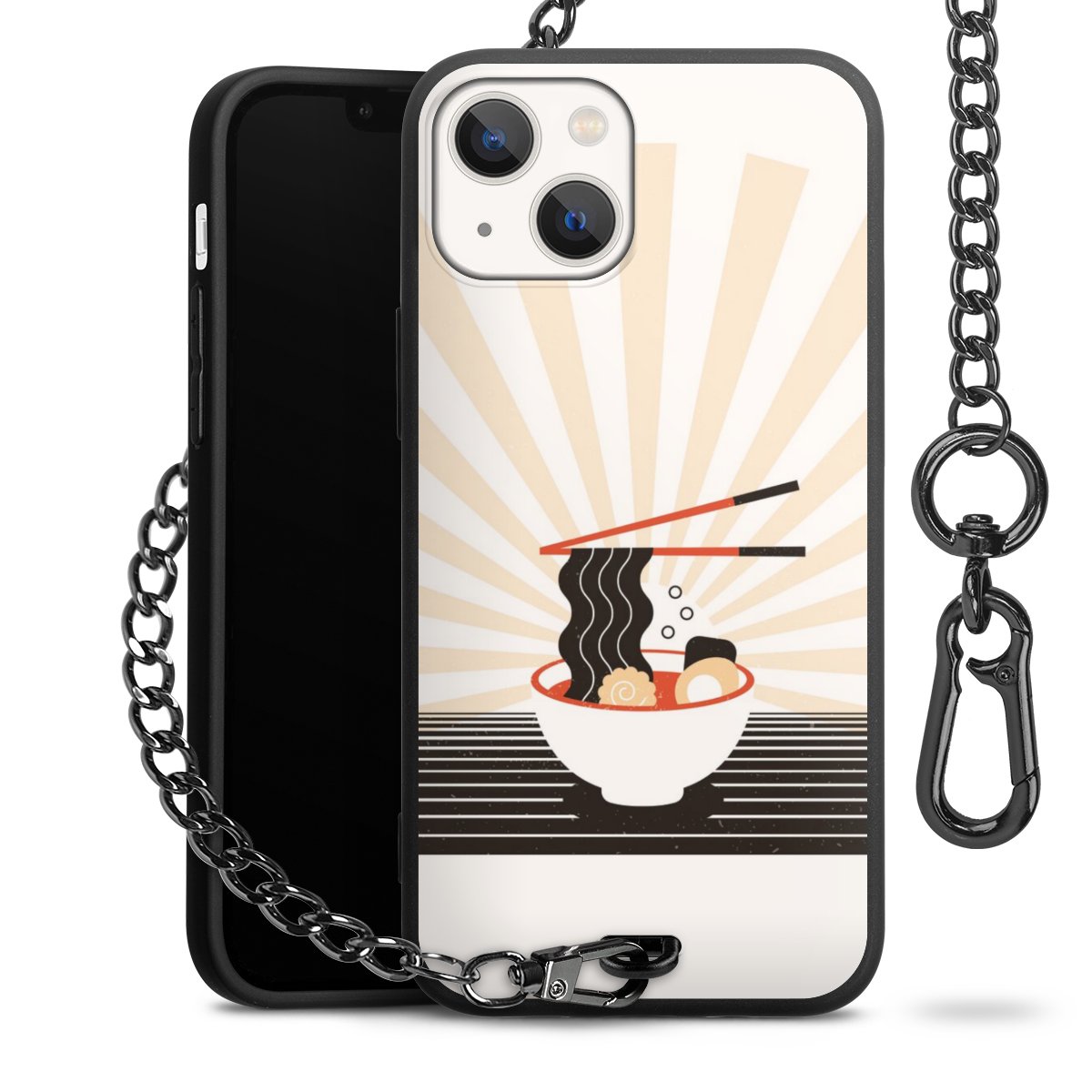 • Mattschwarze Handyhülle mit Metallkette