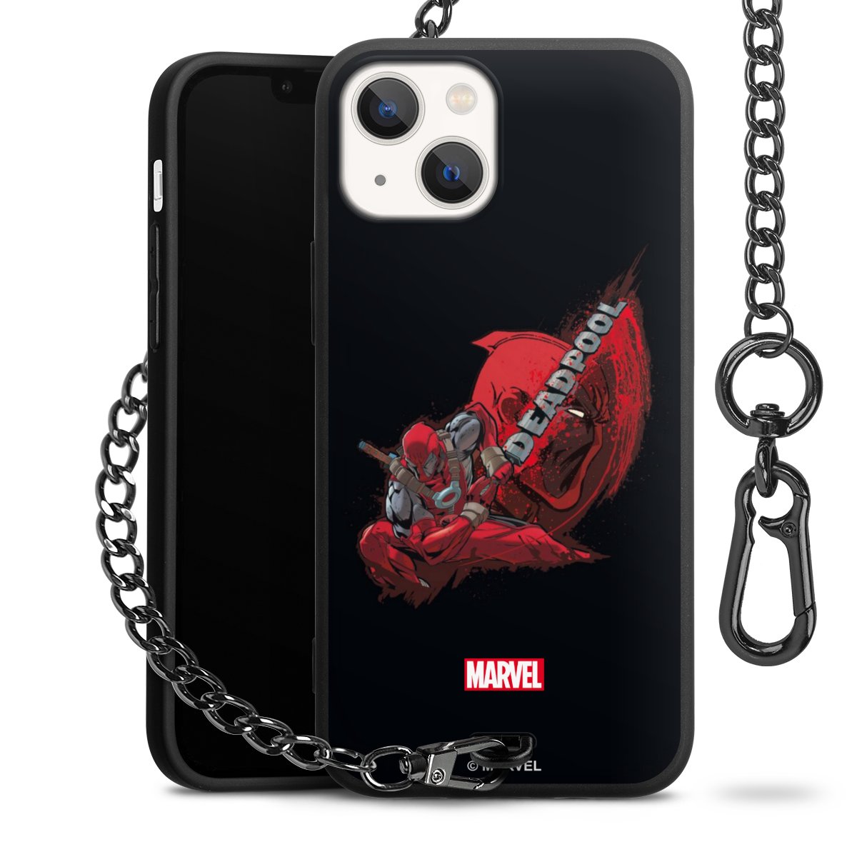 Die mattschwarze Silikon-Handyhülle besteht aus robustem TPU (thermoplastisches Polyurethan). Sie ist flexibel und schützt Dein Smartphone vor Stößen und Kratzern. Die Kette sowie der Karabinerhaken sind aus Metall in Gunmetal-Optik gefertigt. Für dieses Produkt kommen ausschließlich TÜV-geprüfte Materialien zum Einsatz.