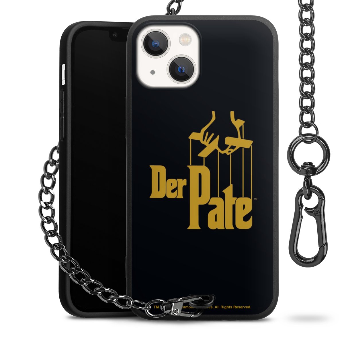 Die mattschwarze Silikon-Handyhülle besteht aus robustem TPU (thermoplastisches Polyurethan). Sie ist flexibel und schützt Dein Smartphone vor Stößen und Kratzern. Die Kette sowie der Karabinerhaken sind aus Metall in Gunmetal-Optik gefertigt. Für dieses Produkt kommen ausschließlich TÜV-geprüfte Materialien zum Einsatz.
