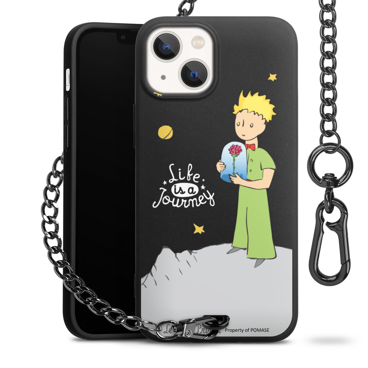 Die Handyhülle verfügt über eine mittig am unteren Rand platzierte Öse, an der die Metallkette stabil befestigt ist. Bestelle die Hülle einfach für Dein Smartphone-Modell, dann passt sie wie angegossen und Du brauchst sie bloß einmal anzudrücken. Handy in die Tasche, Karabiner an den Hosenbund – schon kann die Party starten.