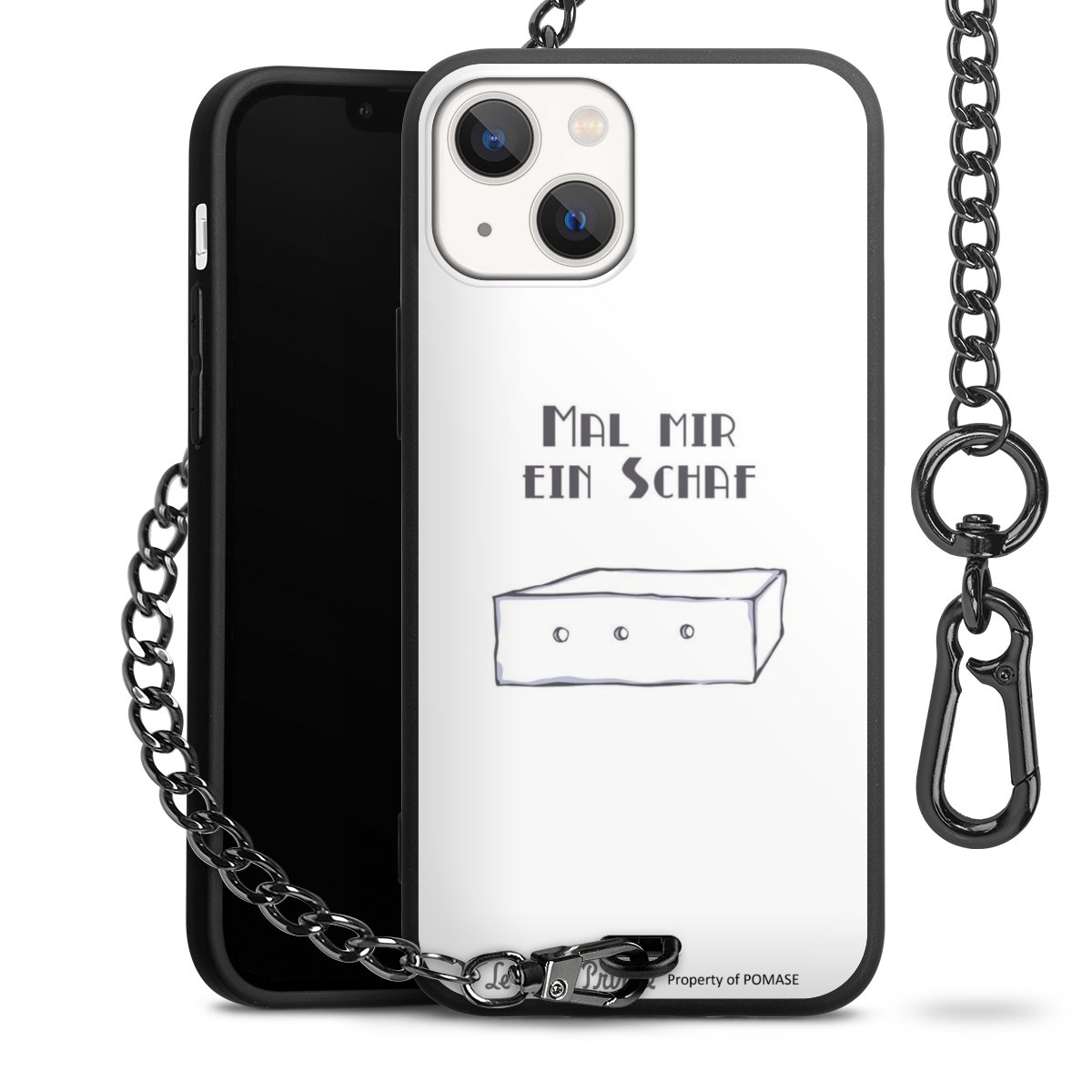 Die Handyhülle verfügt über eine mittig am unteren Rand platzierte Öse, an der die Metallkette stabil befestigt ist. Bestelle die Hülle einfach für Dein Smartphone-Modell, dann passt sie wie angegossen und Du brauchst sie bloß einmal anzudrücken. Handy in die Tasche, Karabiner an den Hosenbund – schon kann die Party starten.