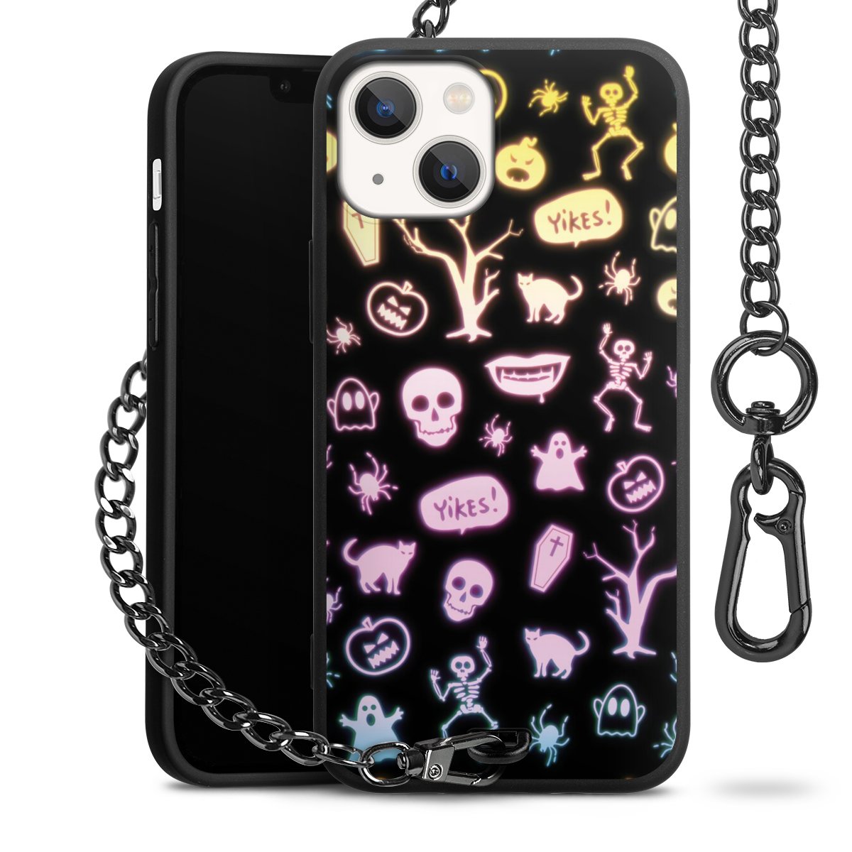 • Mattschwarze Handyhülle mit Metallkette