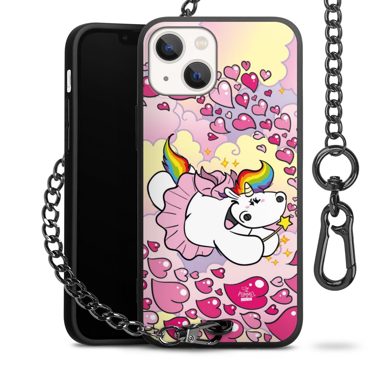 Die mattschwarze Silikon-Handyhülle besteht aus robustem TPU (thermoplastisches Polyurethan). Sie ist flexibel und schützt Dein Smartphone vor Stößen und Kratzern. Die Kette sowie der Karabinerhaken sind aus Metall in Gunmetal-Optik gefertigt. Für dieses Produkt kommen ausschließlich TÜV-geprüfte Materialien zum Einsatz.