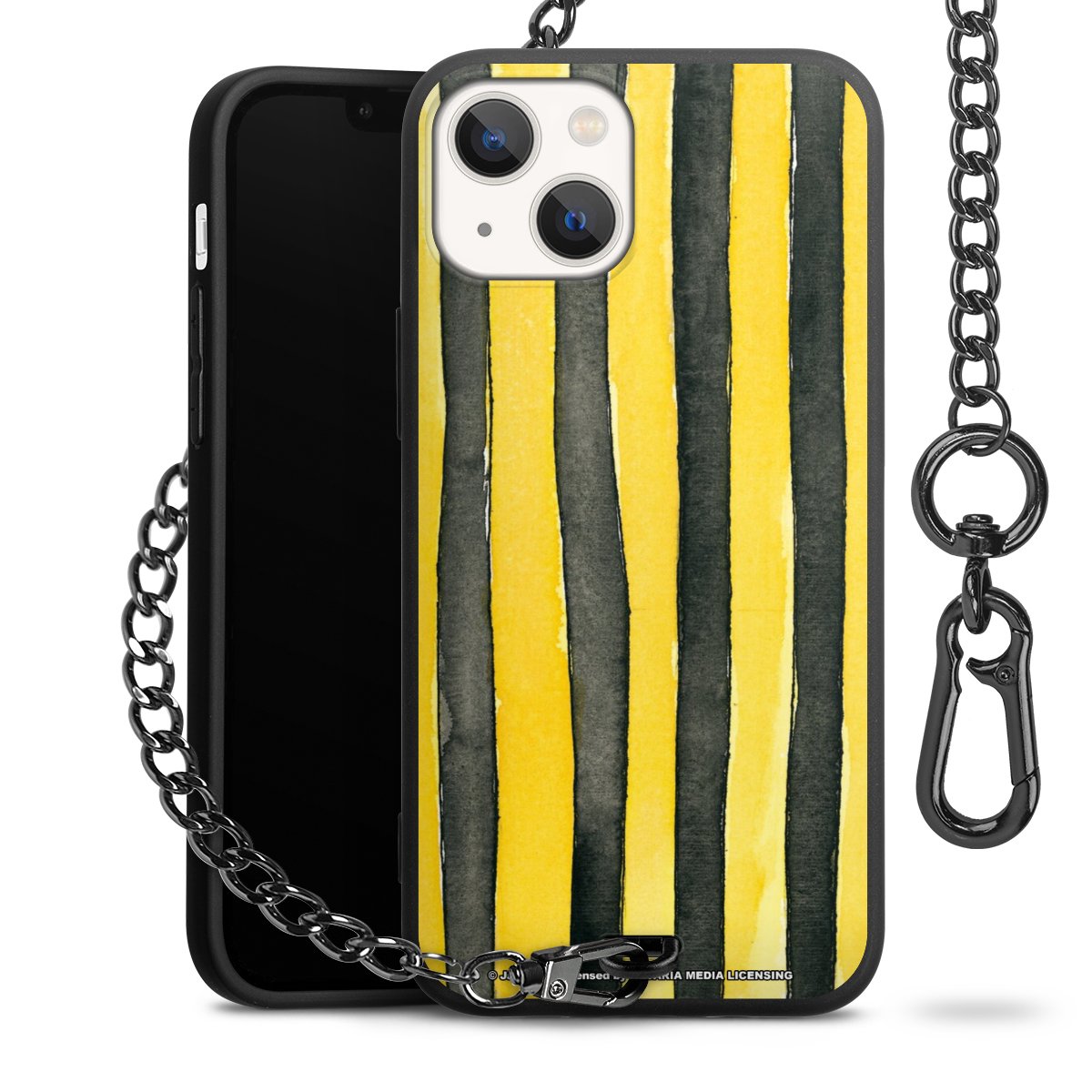 Die mattschwarze Silikon-Handyhülle besteht aus robustem TPU (thermoplastisches Polyurethan). Sie ist flexibel und schützt Dein Smartphone vor Stößen und Kratzern. Die Kette sowie der Karabinerhaken sind aus Metall in Gunmetal-Optik gefertigt. Für dieses Produkt kommen ausschließlich TÜV-geprüfte Materialien zum Einsatz.