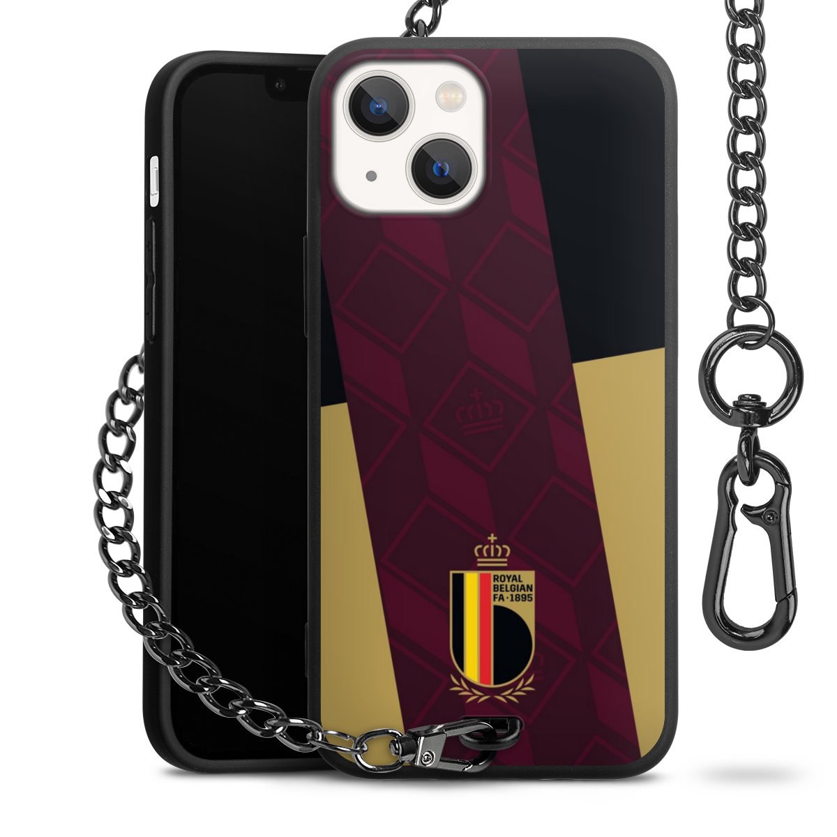 Die mattschwarze Silikon-Handyhülle besteht aus robustem TPU (thermoplastisches Polyurethan). Sie ist flexibel und schützt Dein Smartphone vor Stößen und Kratzern. Die Kette sowie der Karabinerhaken sind aus Metall in Gunmetal-Optik gefertigt. Für dieses Produkt kommen ausschließlich TÜV-geprüfte Materialien zum Einsatz.