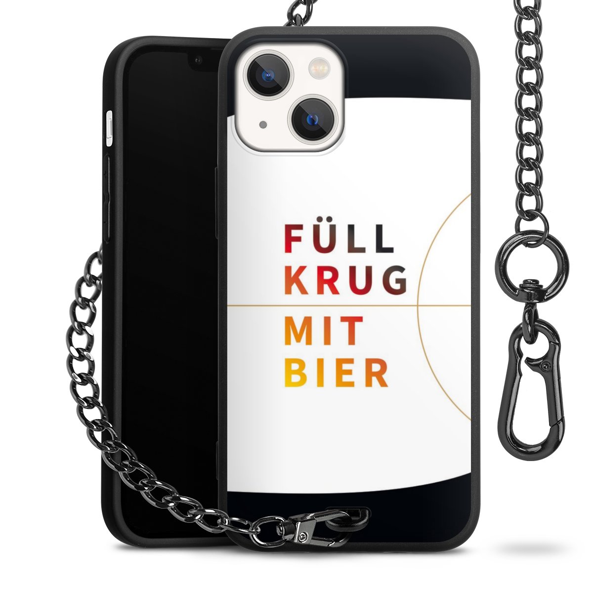 Die Handyhülle verfügt über eine mittig am unteren Rand platzierte Öse, an der die Metallkette stabil befestigt ist. Bestelle die Hülle einfach für Dein Smartphone-Modell, dann passt sie wie angegossen und Du brauchst sie bloß einmal anzudrücken. Handy in die Tasche, Karabiner an den Hosenbund – schon kann die Party starten.