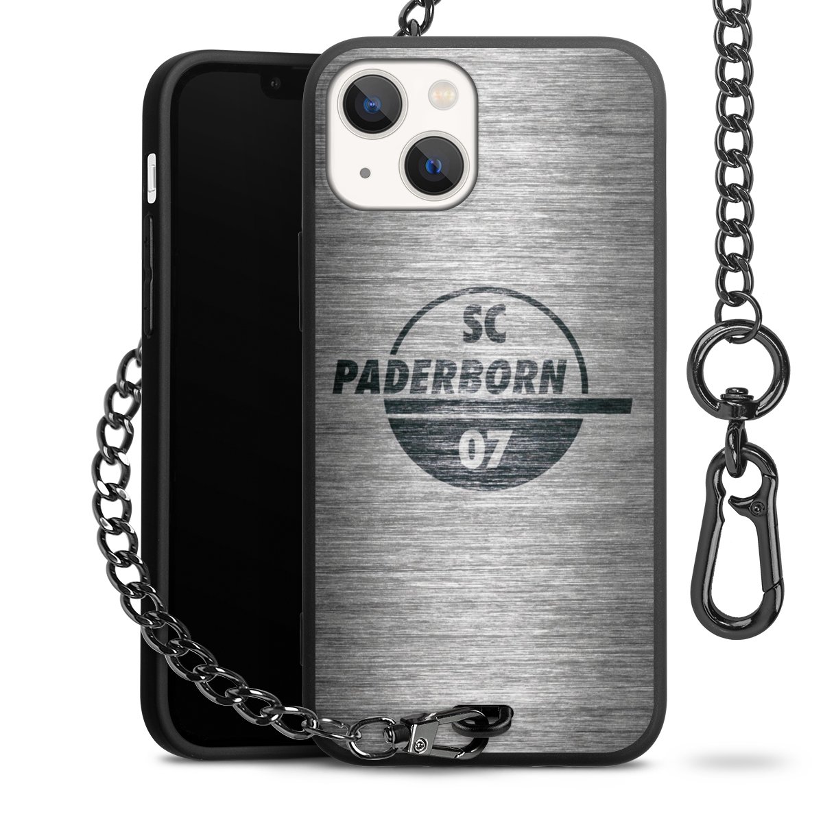 • Mattschwarze Handyhülle mit Metallkette