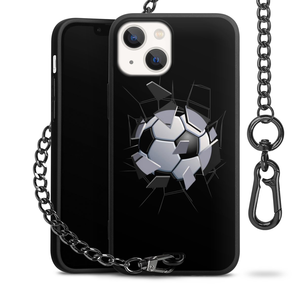 • Mattschwarze Handyhülle mit Metallkette