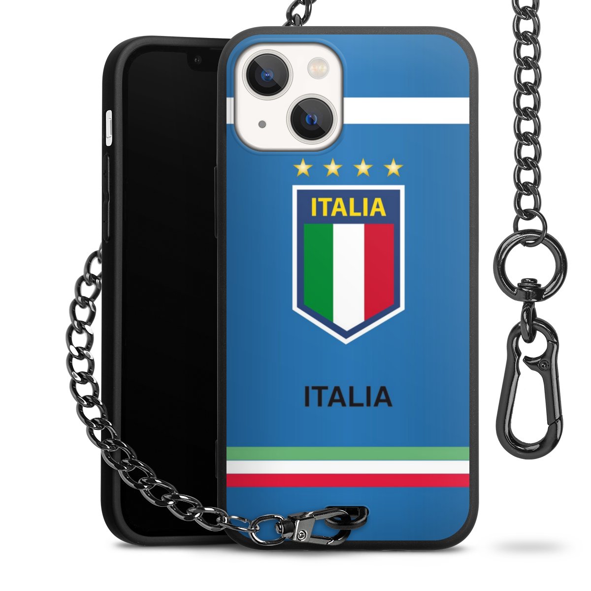 - Mattschwarze Handyhülle mit Metallkette