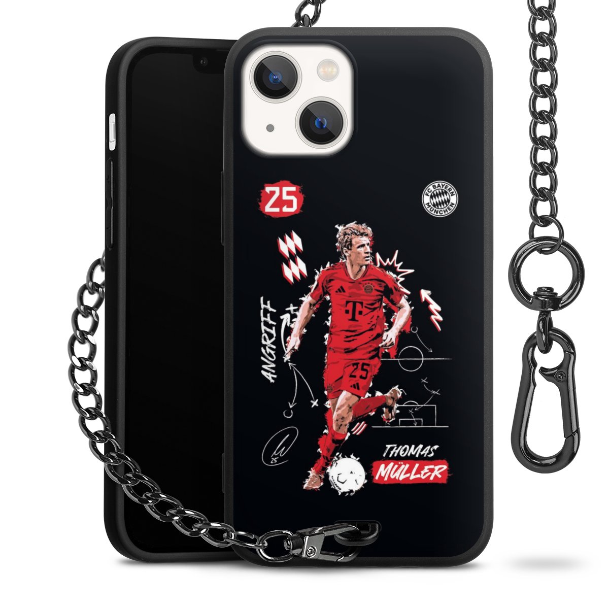 • Mattschwarze Handyhülle mit Metallkette