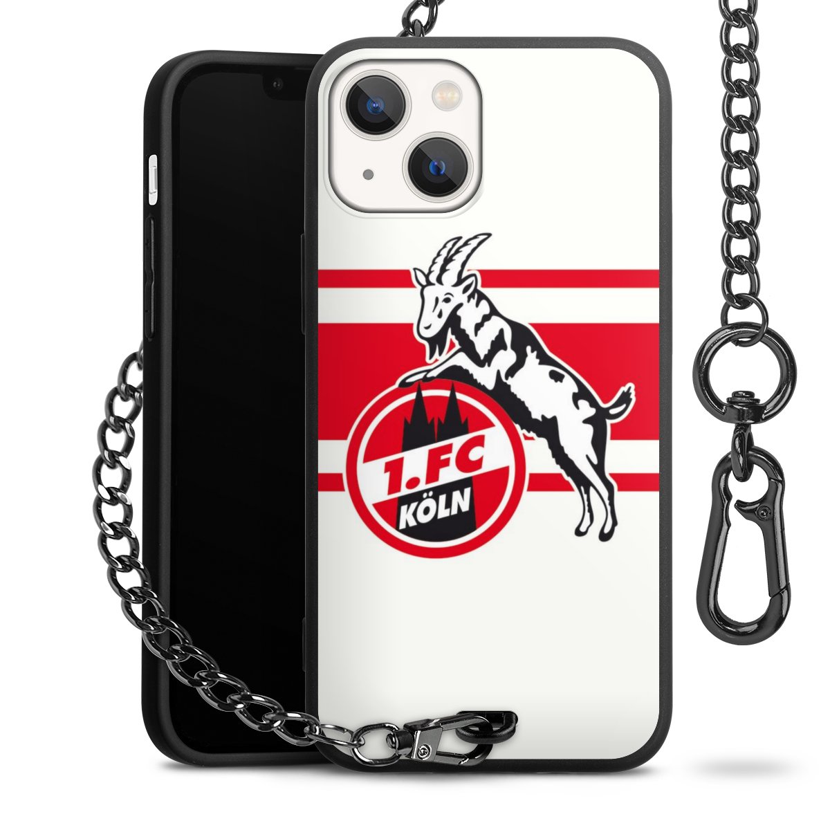 Die Handyhülle verfügt über eine mittig am unteren Rand platzierte Öse, an der die Metallkette stabil befestigt ist. Bestelle die Hülle einfach für Dein Smartphone-Modell, dann passt sie wie angegossen und Du brauchst sie bloß einmal anzudrücken. Handy in die Tasche, Karabiner an den Hosenbund – schon kann die Party starten.