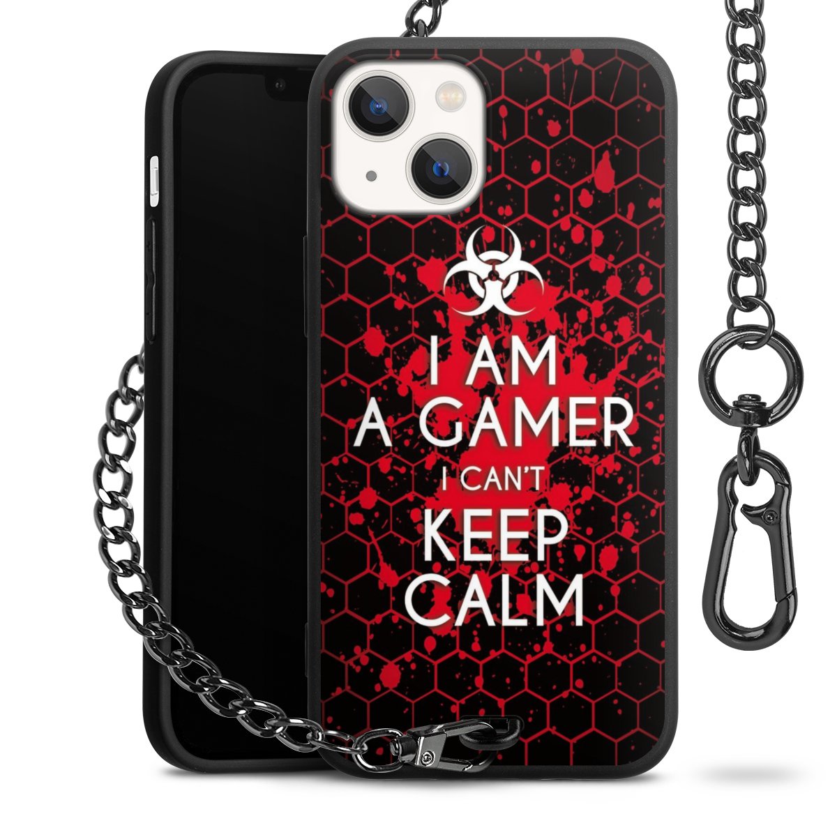 Die mattschwarze Silikon-Handyhülle besteht aus robustem TPU (thermoplastisches Polyurethan). Sie ist flexibel und schützt Dein Smartphone vor Stößen und Kratzern. Die Kette sowie der Karabinerhaken sind aus Metall in Gunmetal-Optik gefertigt. Für dieses Produkt kommen ausschließlich TÜV-geprüfte Materialien zum Einsatz.