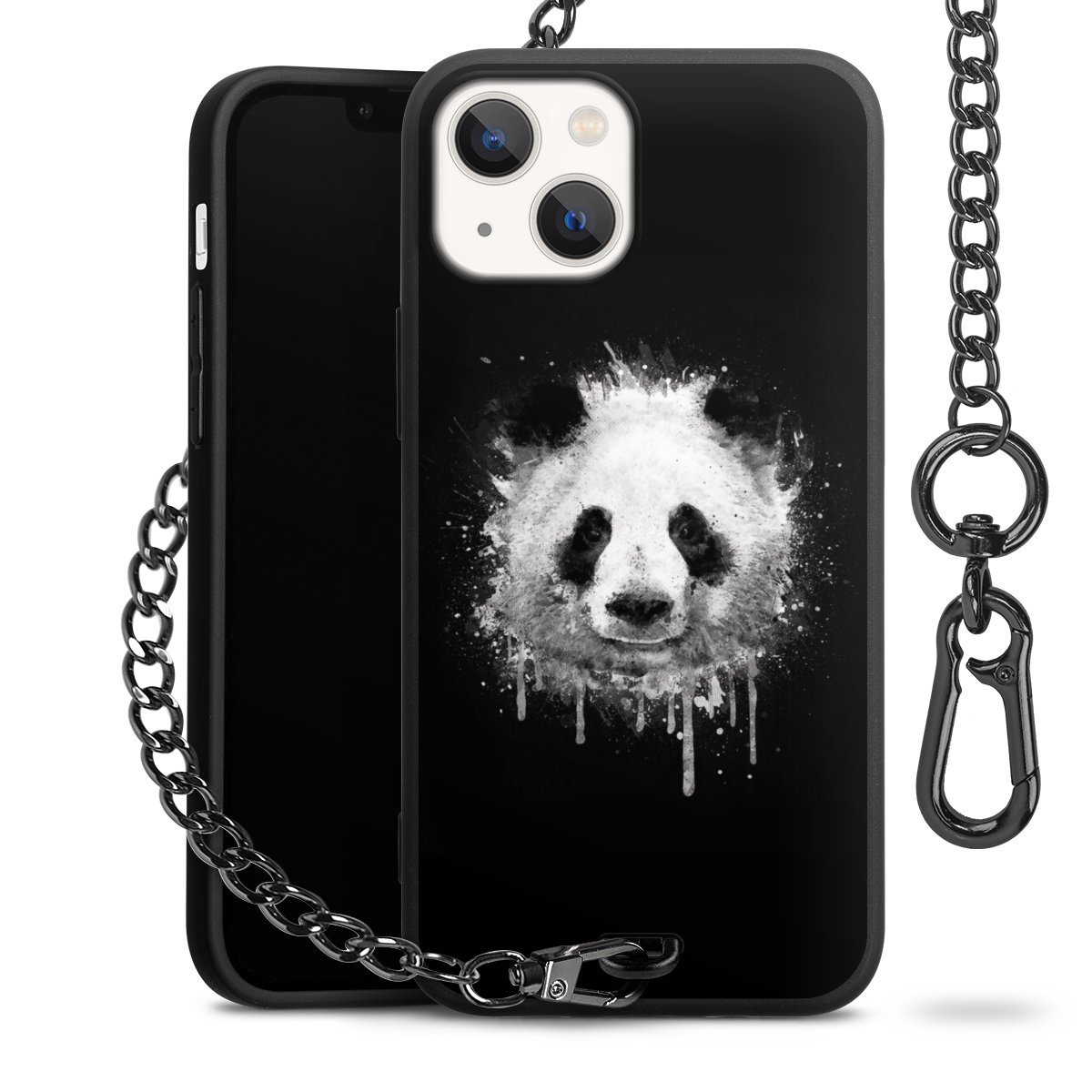• Mattschwarze Handyhülle mit Metallkette