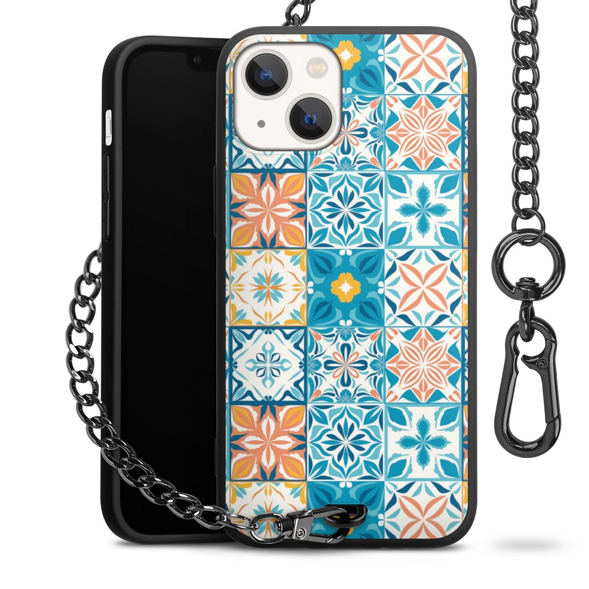 • Mattschwarze Handyhülle mit Metallkette