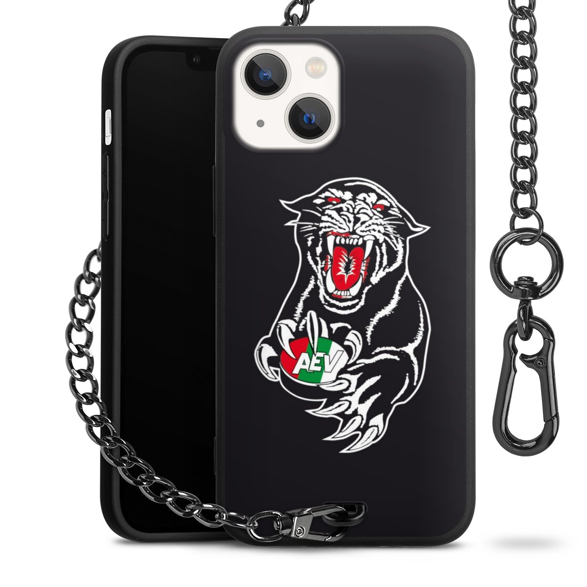 Die mattschwarze Silikon-Handyhülle besteht aus robustem TPU (thermoplastisches Polyurethan). Sie ist flexibel und schützt Dein Smartphone vor Stößen und Kratzern. Die Kette sowie der Karabinerhaken sind aus Metall in Gunmetal-Optik gefertigt. Für dieses Produkt kommen ausschließlich TÜV-geprüfte Materialien zum Einsatz.