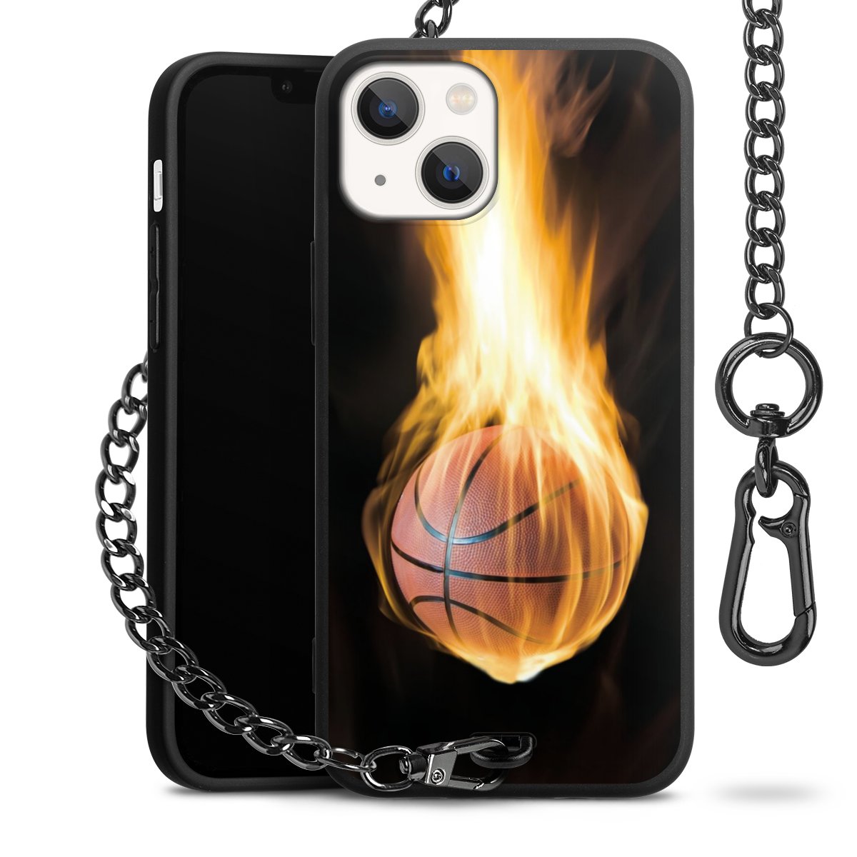 • Mattschwarze Handyhülle mit Metallkette