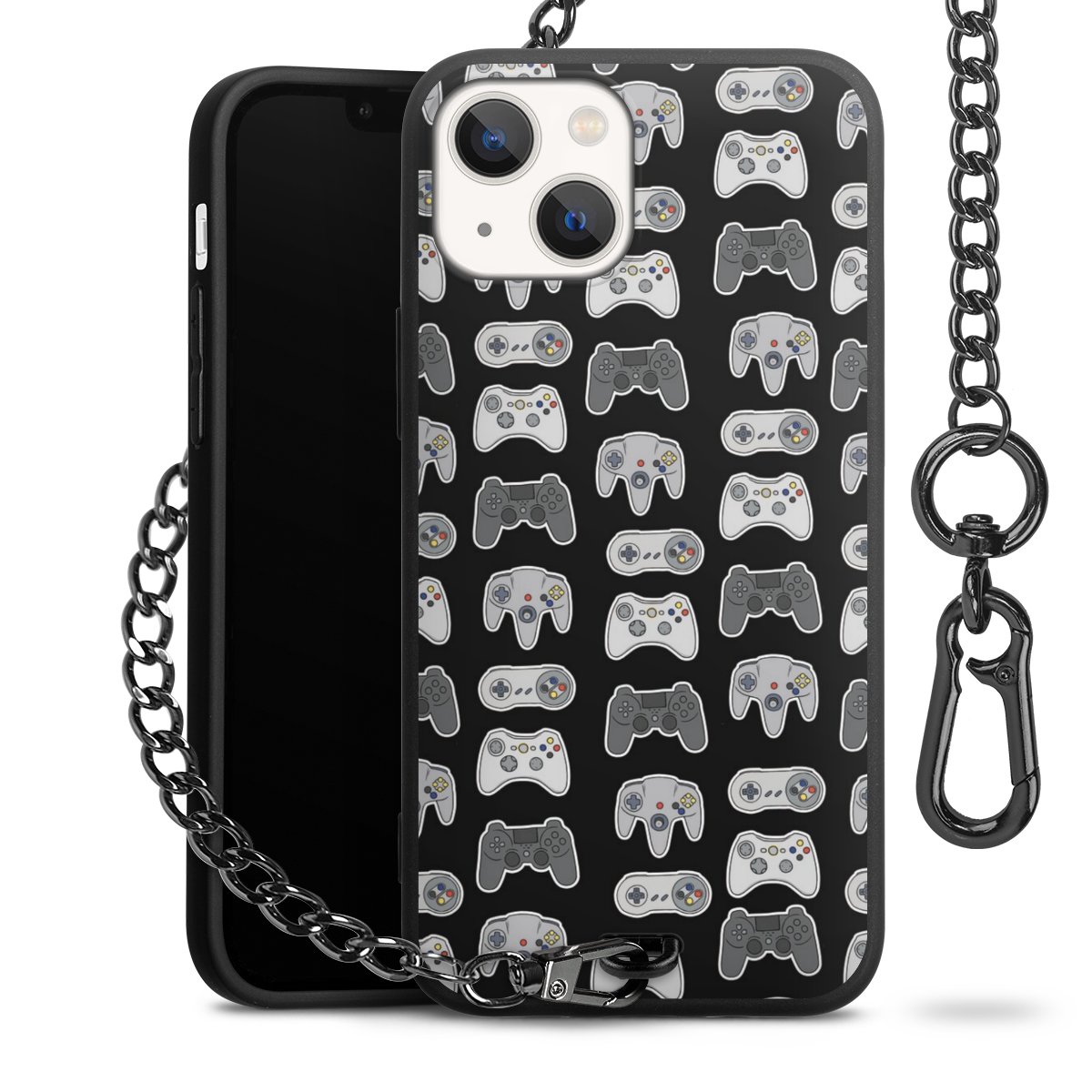 • Mattschwarze Handyhülle mit Metallkette