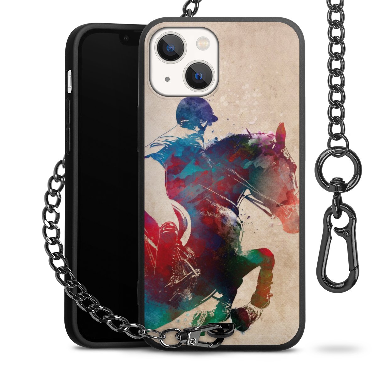 • Mattschwarze Handyhülle mit Metallkette