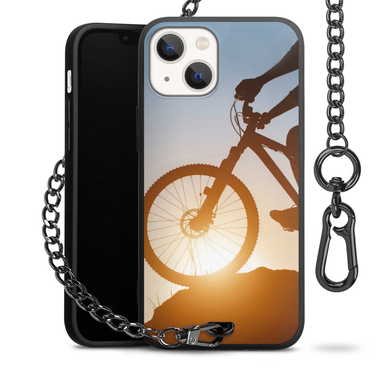 • Mattschwarze Handyhülle mit Metallkette