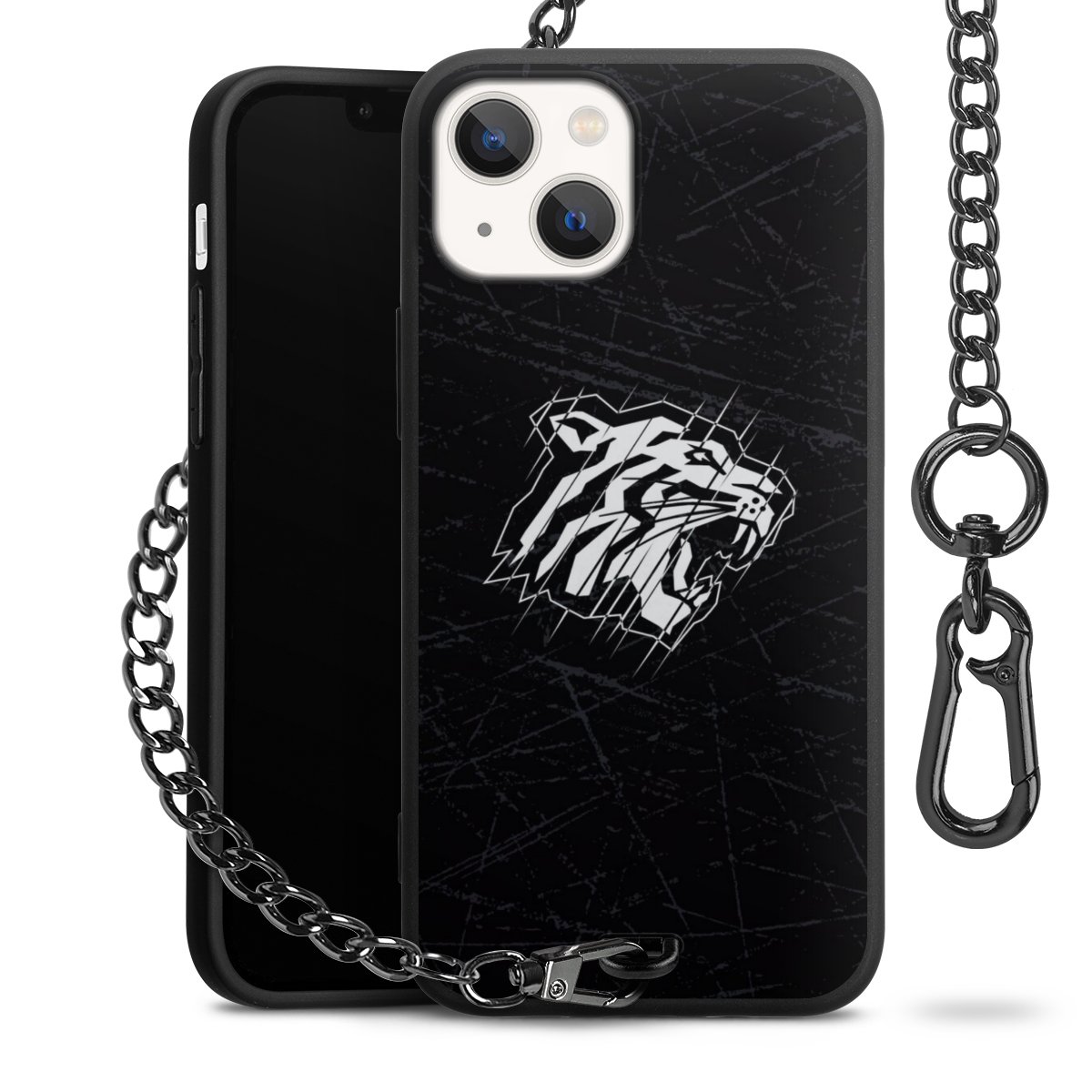 - Mattschwarze Handyhülle mit Metallkette