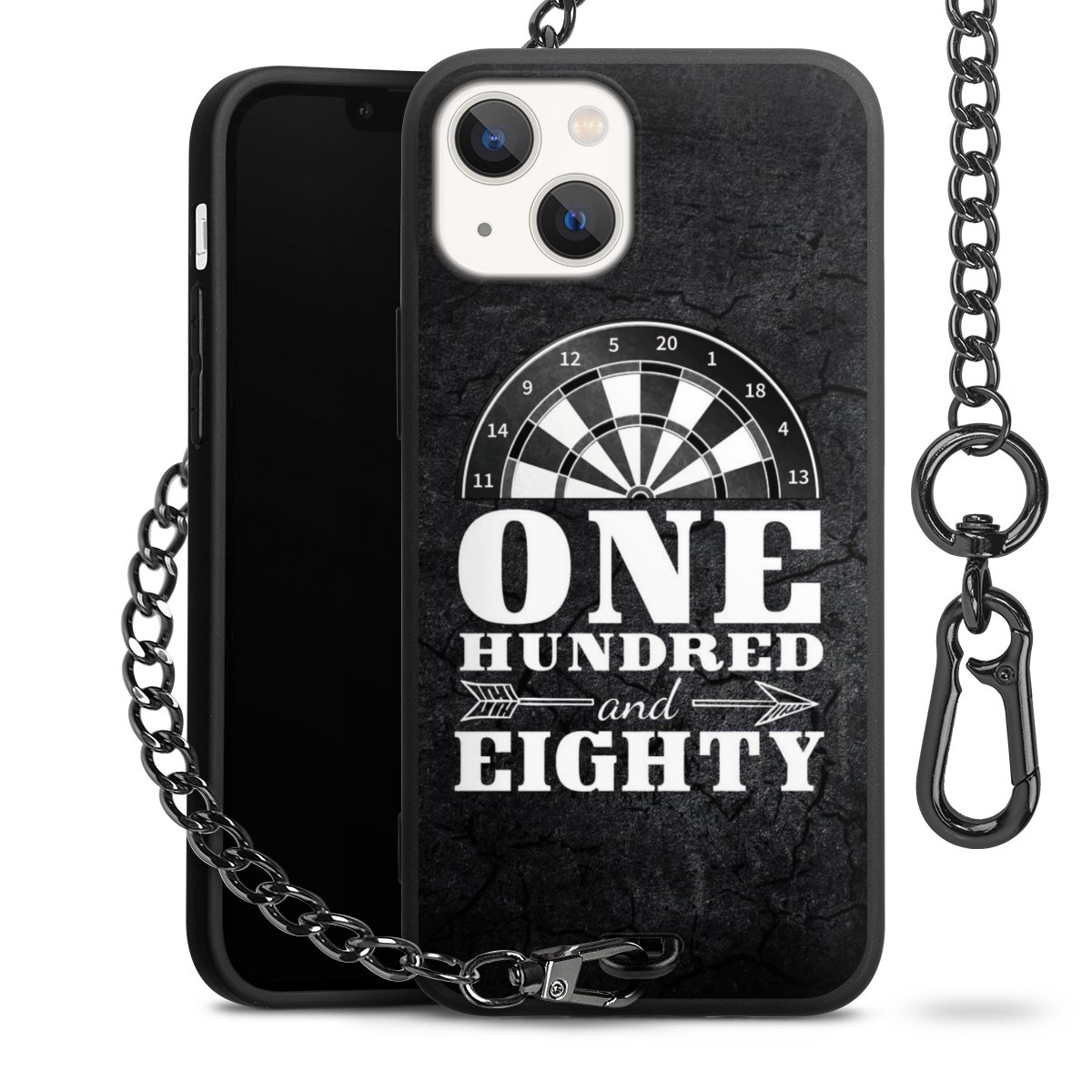 - Mattschwarze Handyhülle mit Metallkette