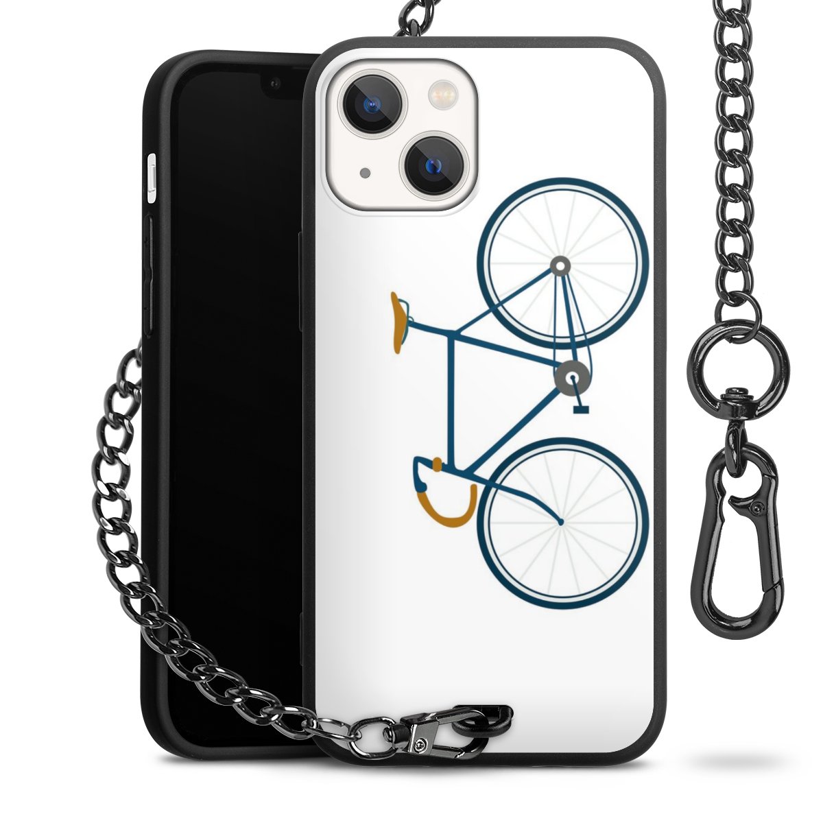 - Mattschwarze Handyhülle mit Metallkette