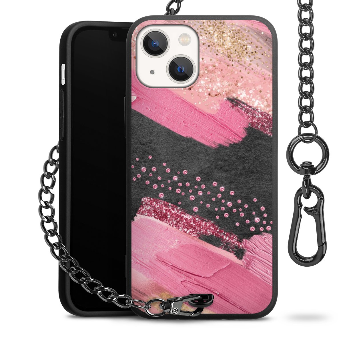 • Mattschwarze Handyhülle mit Metallkette