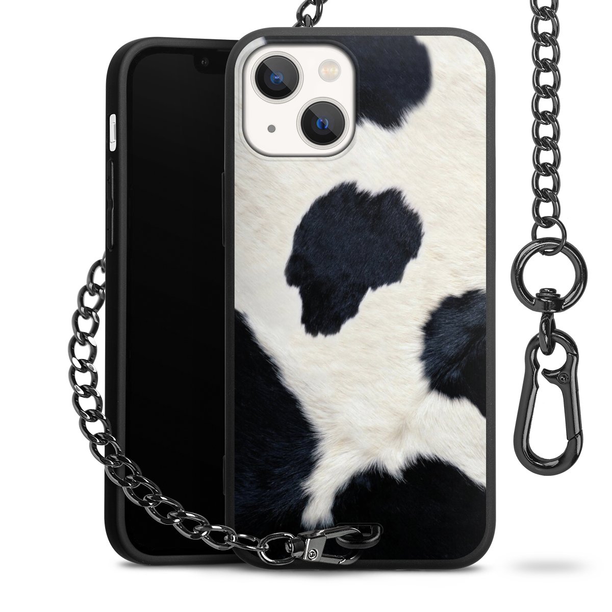 - Mattschwarze Handyhülle mit Metallkette