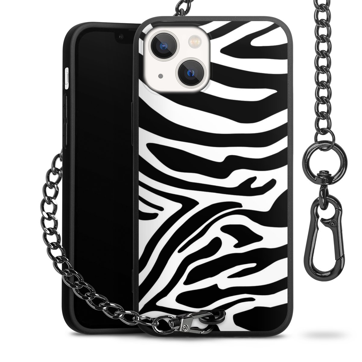 • Mattschwarze Handyhülle mit Metallkette