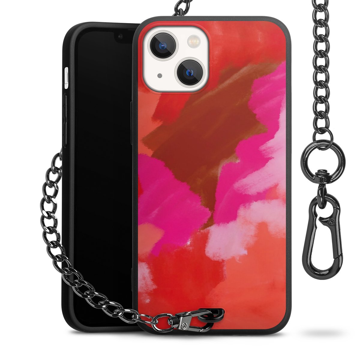 • Mattschwarze Handyhülle mit Metallkette