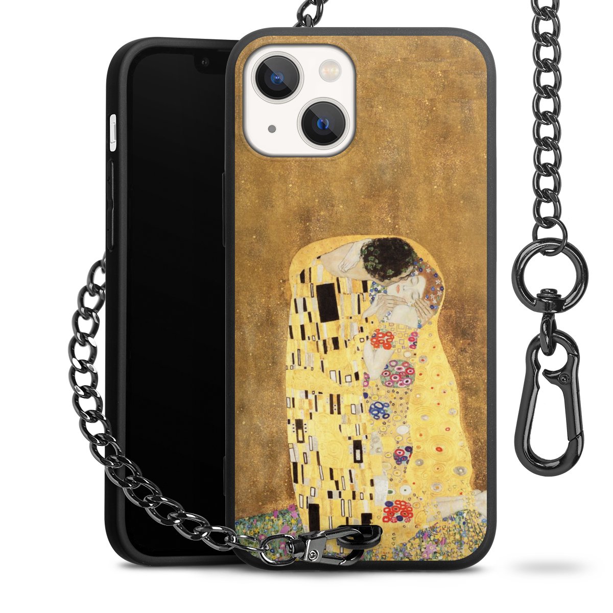 • Mattschwarze Handyhülle mit Metallkette
