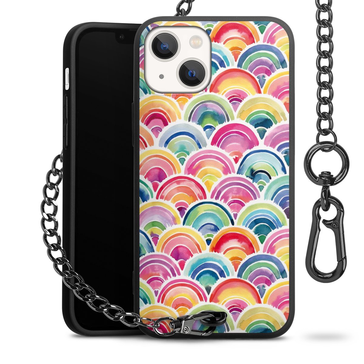 • Mattschwarze Handyhülle mit Metallkette