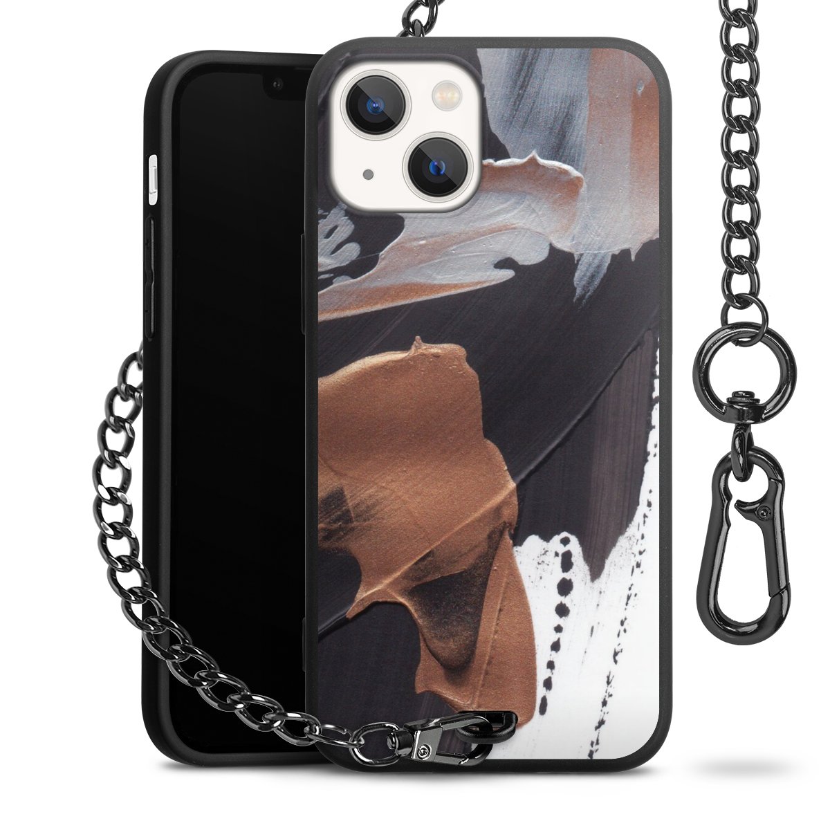 • Mattschwarze Handyhülle mit Metallkette