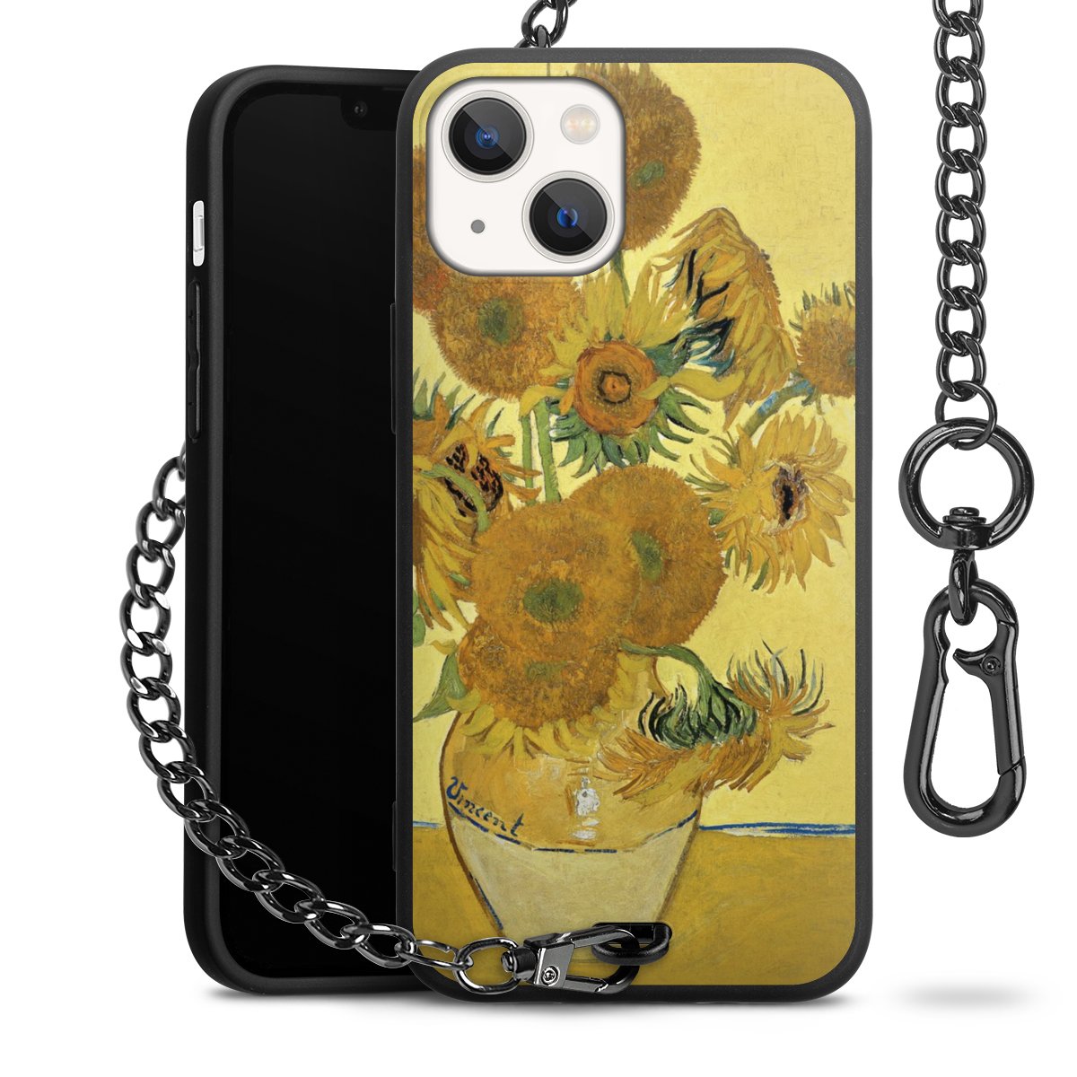 • Mattschwarze Handyhülle mit Metallkette