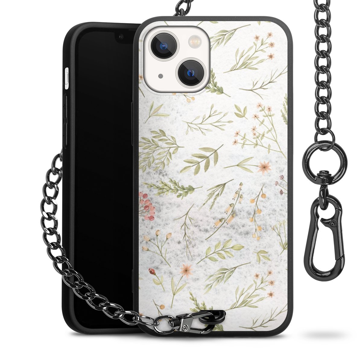 - Mattschwarze Handyhülle mit Metallkette