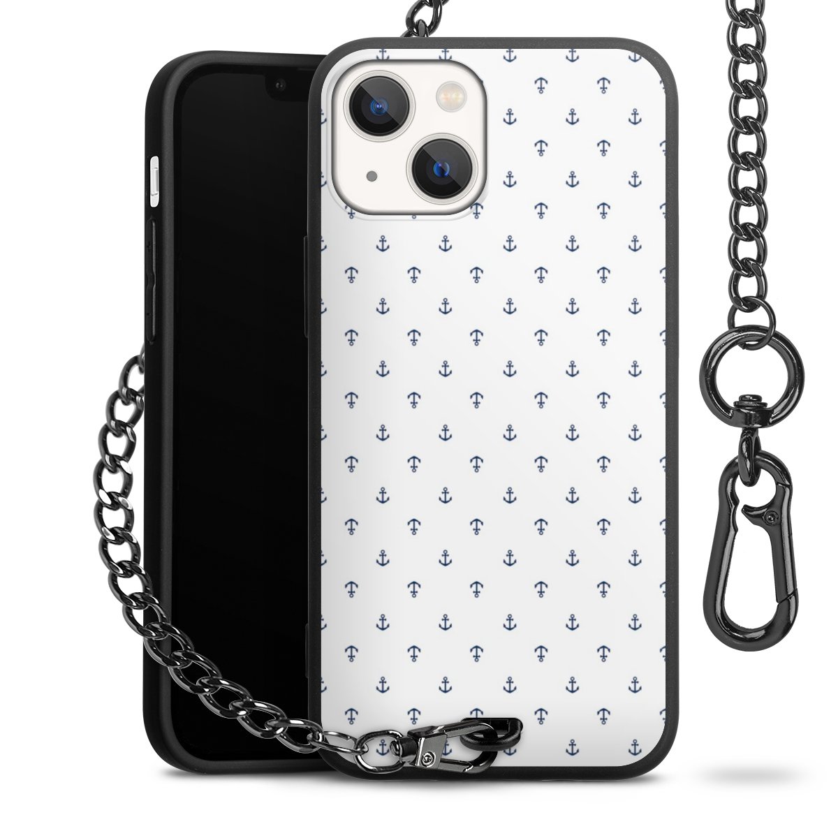 - Mattschwarze Handyhülle mit Metallkette