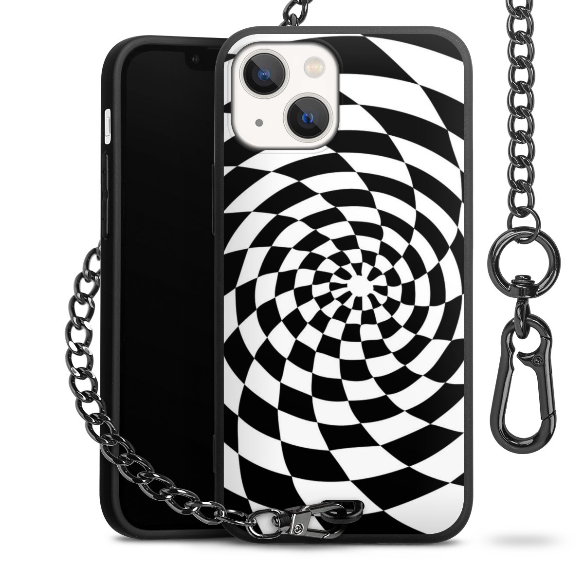 • Mattschwarze Handyhülle mit Metallkette
