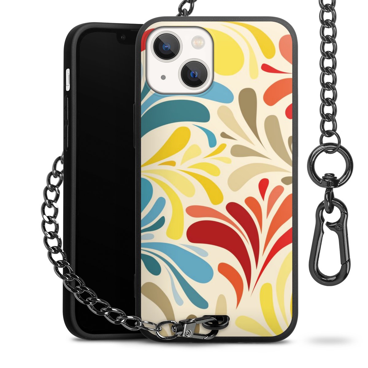 - Mattschwarze Handyhülle mit Metallkette