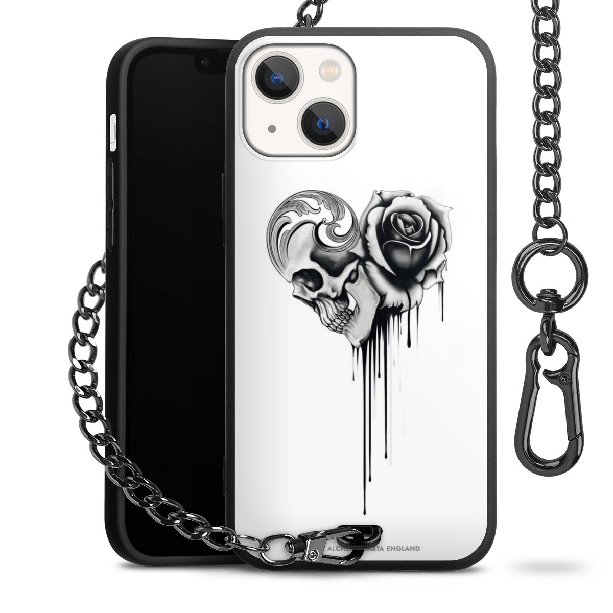 Die mattschwarze Silikon-Handyhülle besteht aus robustem TPU (thermoplastisches Polyurethan). Sie ist flexibel und schützt Dein Smartphone vor Stößen und Kratzern. Die Kette sowie der Karabinerhaken sind aus Metall in Gunmetal-Optik gefertigt. Für dieses Produkt kommen ausschließlich TÜV-geprüfte Materialien zum Einsatz.