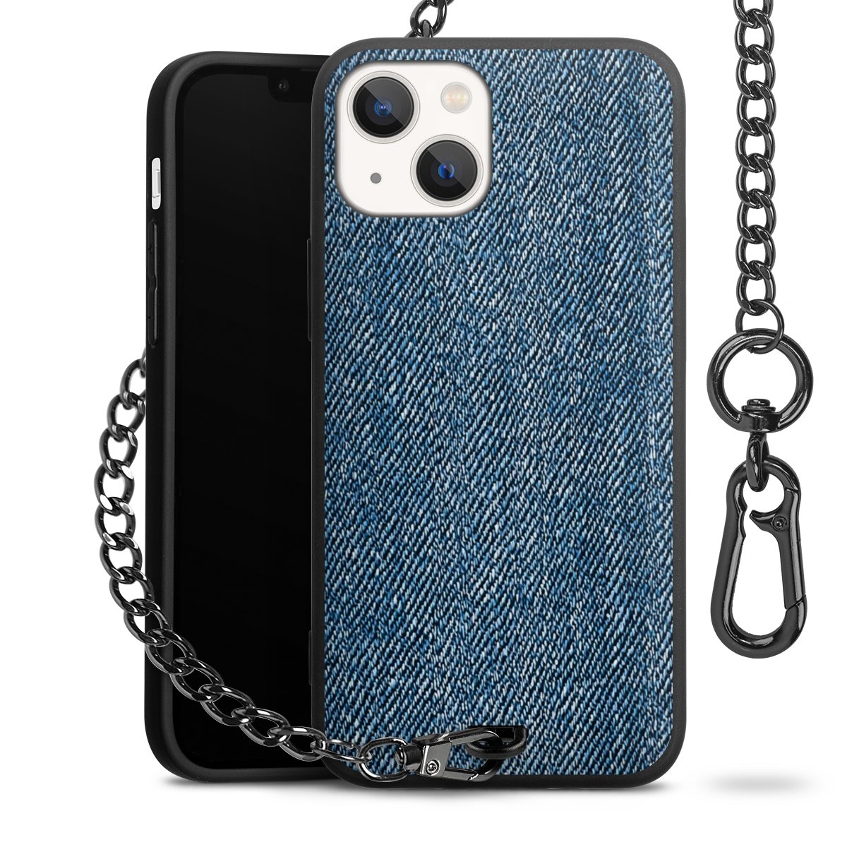 • Mattschwarze Handyhülle mit Metallkette