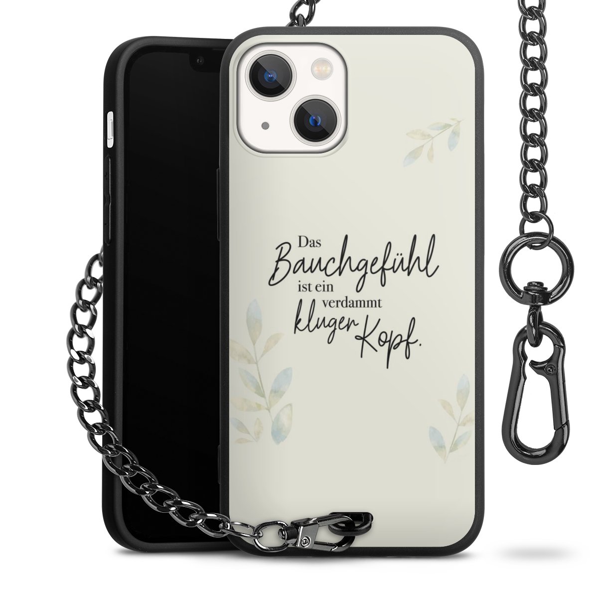 Die mattschwarze Silikon-Handyhülle besteht aus robustem TPU (thermoplastisches Polyurethan). Sie ist flexibel und schützt Dein Smartphone vor Stößen und Kratzern. Die Kette sowie der Karabinerhaken sind aus Metall in Gunmetal-Optik gefertigt. Für dieses Produkt kommen ausschließlich TÜV-geprüfte Materialien zum Einsatz.